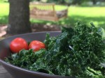 This salad is a regular staple ‘bowl meal’ in our home. We pick kale straight from the garden, but we recommend organic bunches from the grocery in absence. Kale is a wonder-leaf and chock full of nutrients, but with it comes bitterness. The sweet-and-sour combo will help.