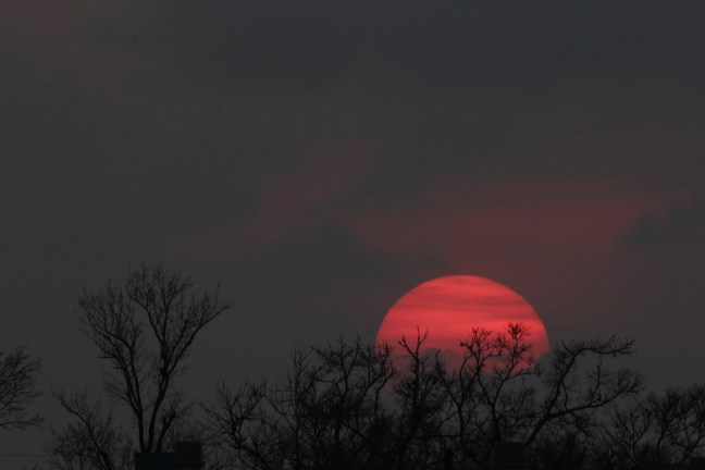 After several weeks of 'chasing' it, I finally got some decent shots of the roosting tree down the street, loaded with birds. And a spectacular sunset ta boot. Huzzah!